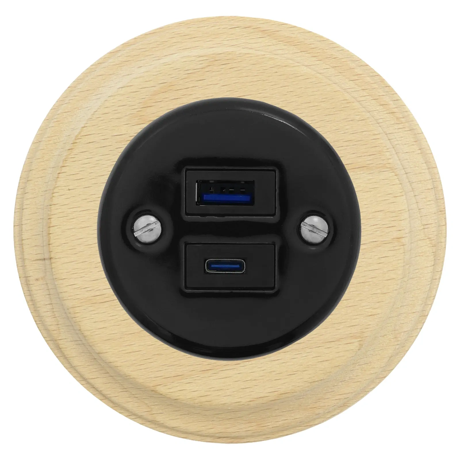 Seria Ceramic Loft: Gniazdo USB A+C ceramiczne + ramka drewniana.