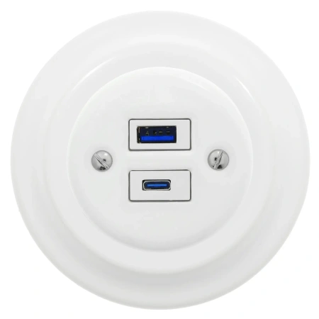 Seria Ceramic Loft: Gniazdo USB A+C ceramiczne + ramka ceramiczna.