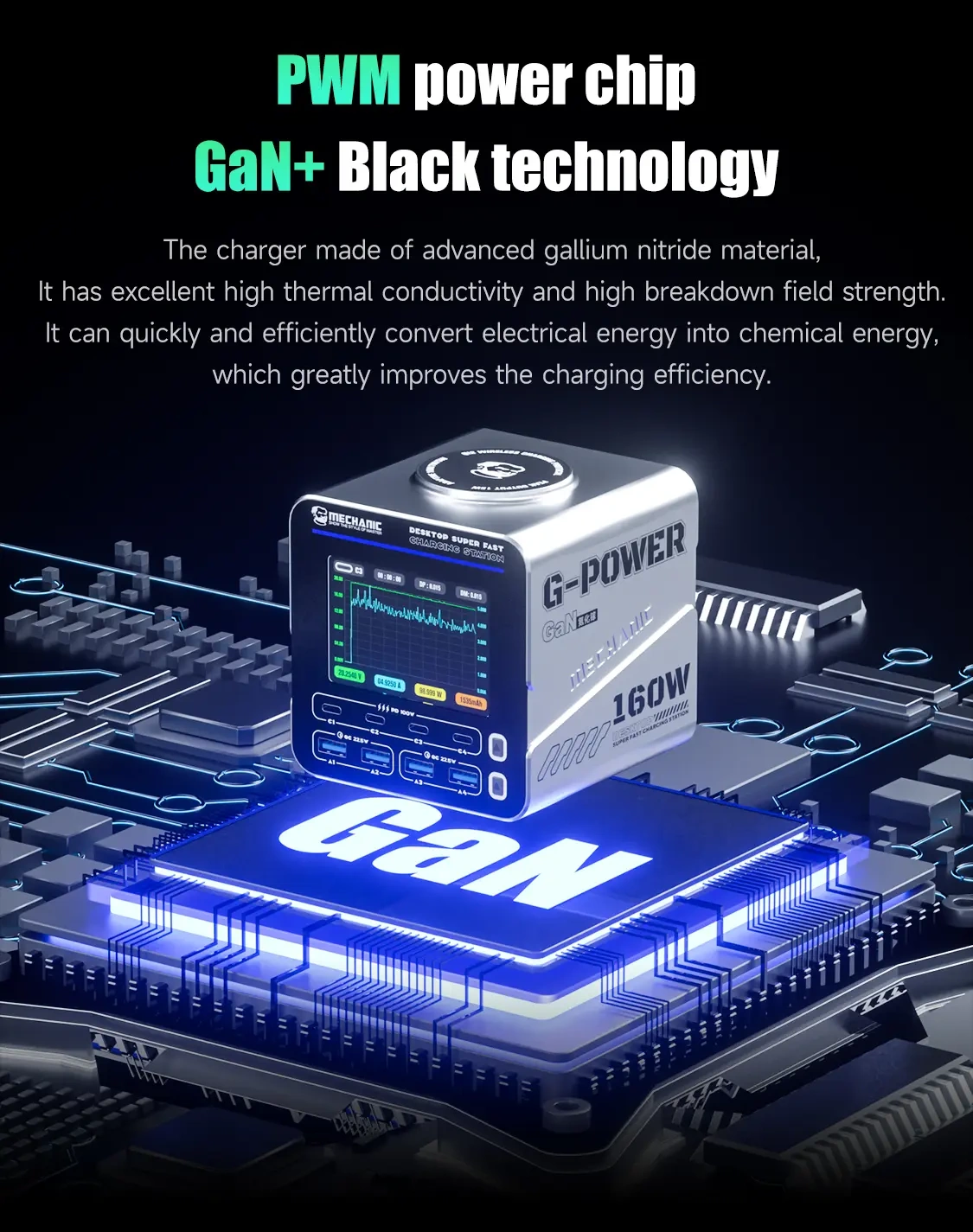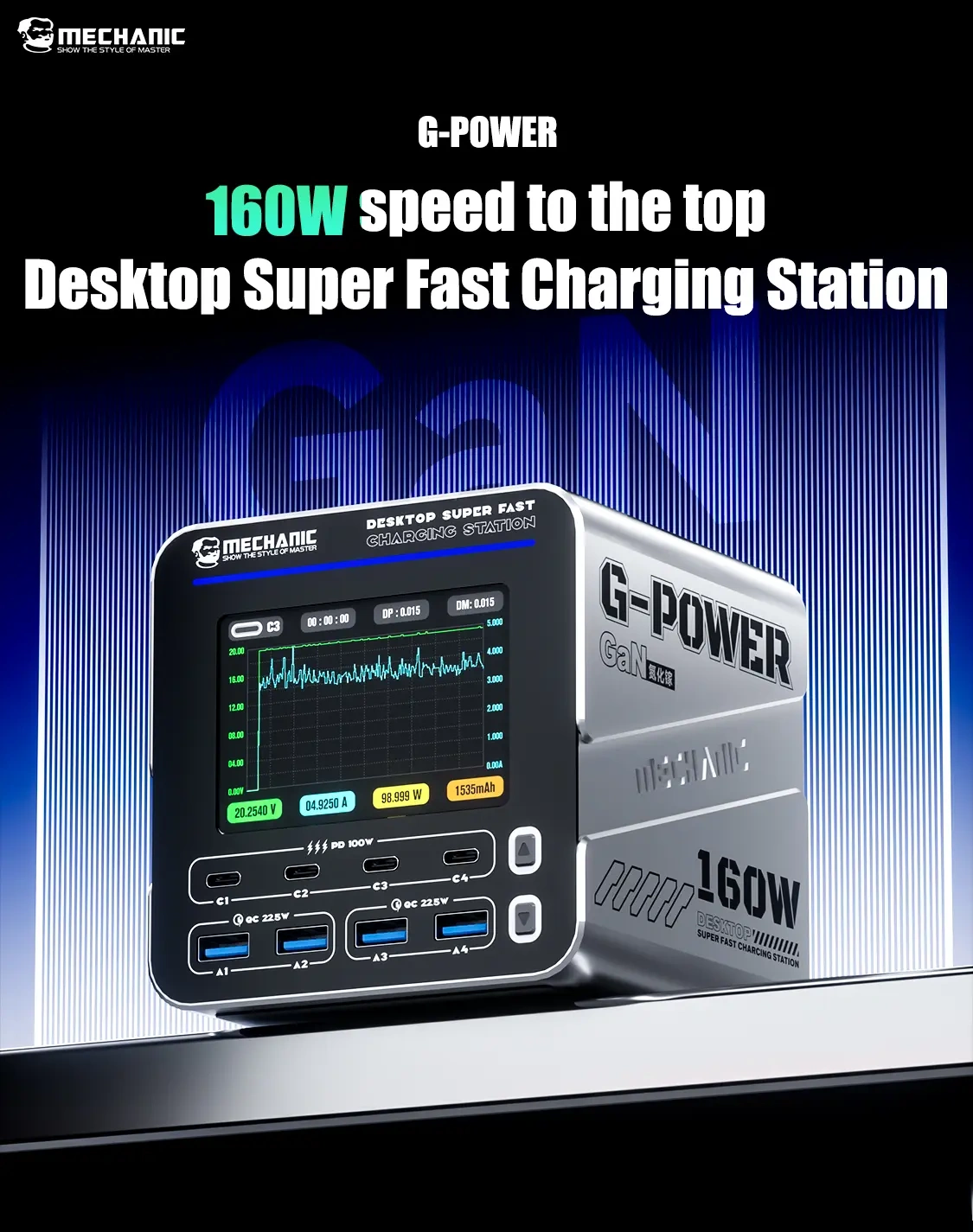 Inteligentna stacja ładowania 160W GaN G-POWER Mechanic⚡