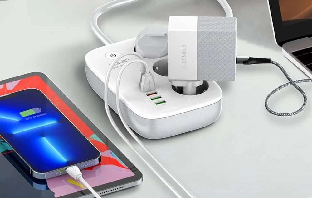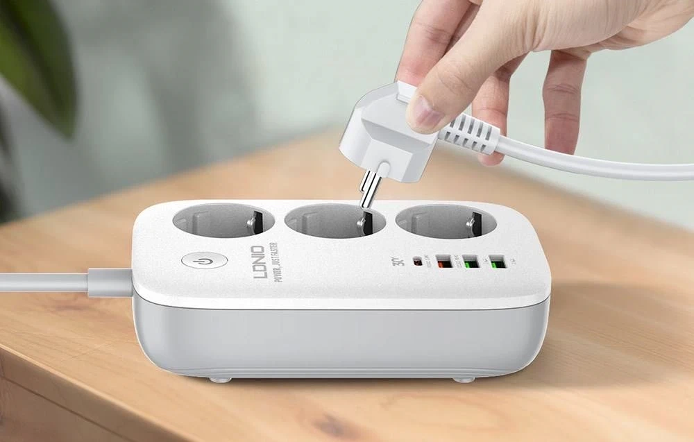 Inteligentna listwa zasilająca Wi-Fi LDNIO SEW3452 została wyposażona w 3 gniazda oraz 4 porty USB, które wyróżniają się szeroką kompatybilnością i pozwolą wygodnie ładować potrzebne urządzenia. Produkt umożliwia wygodne zarządzanie pracą urządzeń elektrycznych w Twoim domu i ułatwia codziennie funkcjonowanie. Zgodność z protokołami PD3.0 i QC3.0 sprawia, że możesz szybko odnawiać energię smartfonów i tabletów. Dodatkowo istnieje możliwość zdalnej obsługi za pomocą aplikacji Tuya Smart.