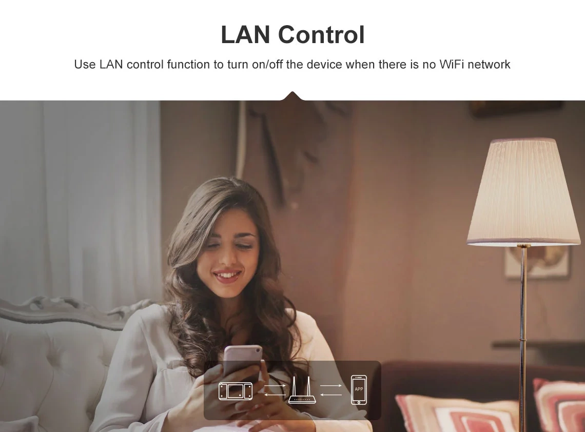 - Sterowanie zdalne przez Wi-Fi – obsługa aplikacji eWeLink (Android/iOS).