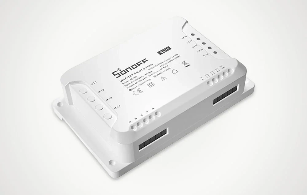 Czyli Sonoff 4CHR2 to inteligentny przełącznik Wi-Fi z 4 kanałami, druga generacja – przeznaczony np. do sterowania oświetleniem, gniazdami, bramami, roletami itp., gdzie każdy kanał działa niezależnie.