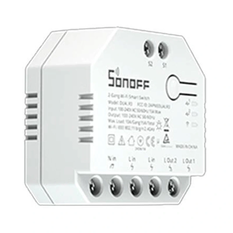 SONOFF DUALR3 to dwukanałowy inteligentny przełącznik do smart home, który można zamontować w standardowych puszkach elektrycznych – np. za włącznikiem światła lub przełącznikiem rolet. Umożliwia zdalne sterowanie urządzeniami, ustawianie harmonogramów, automatyzację oraz udostępnianie dostępu innym domownikom. To kompaktowe rozwiązanie łączy funkcje sterowania oświetleniem, automatyki rolet i monitoringu zużycia energii w jednym module.