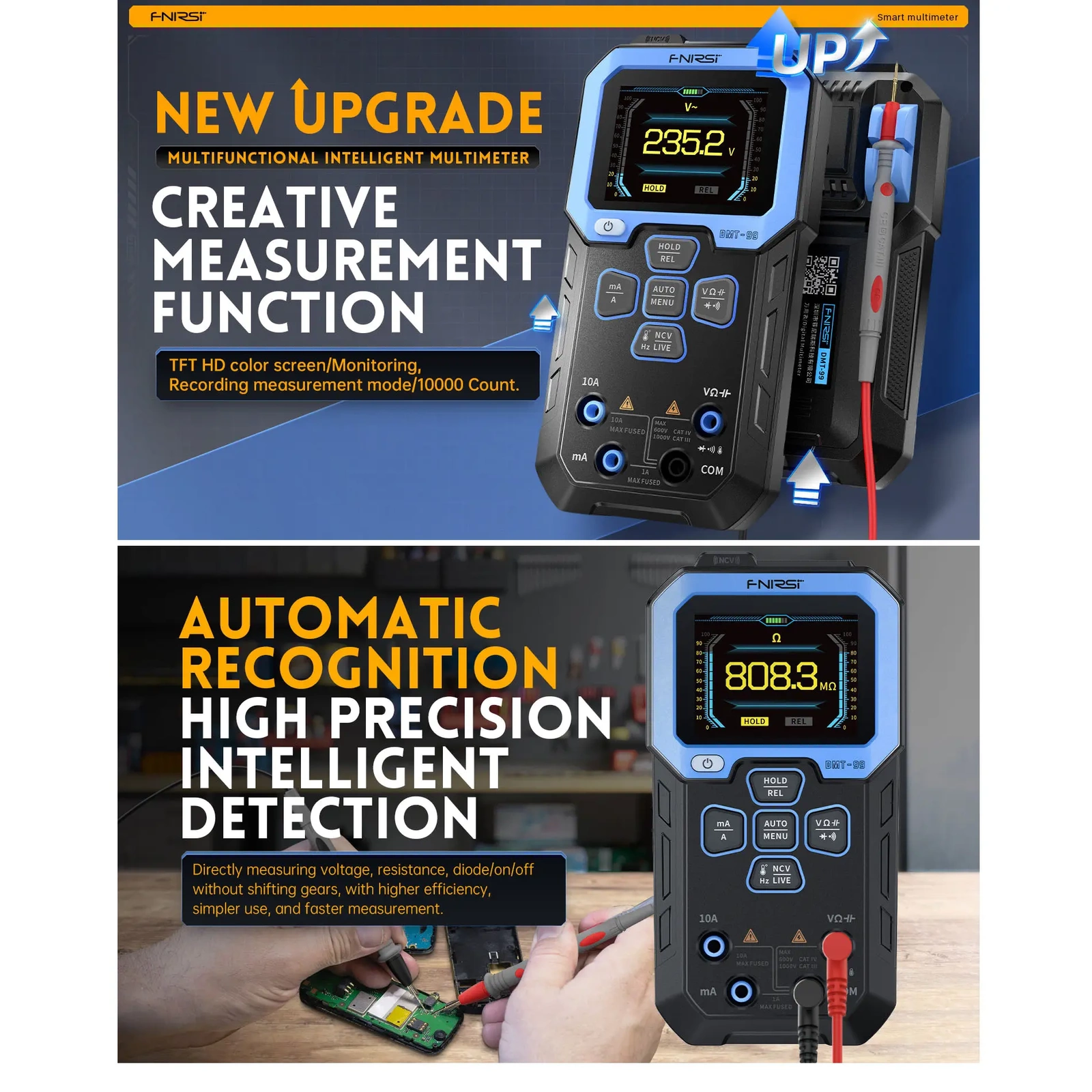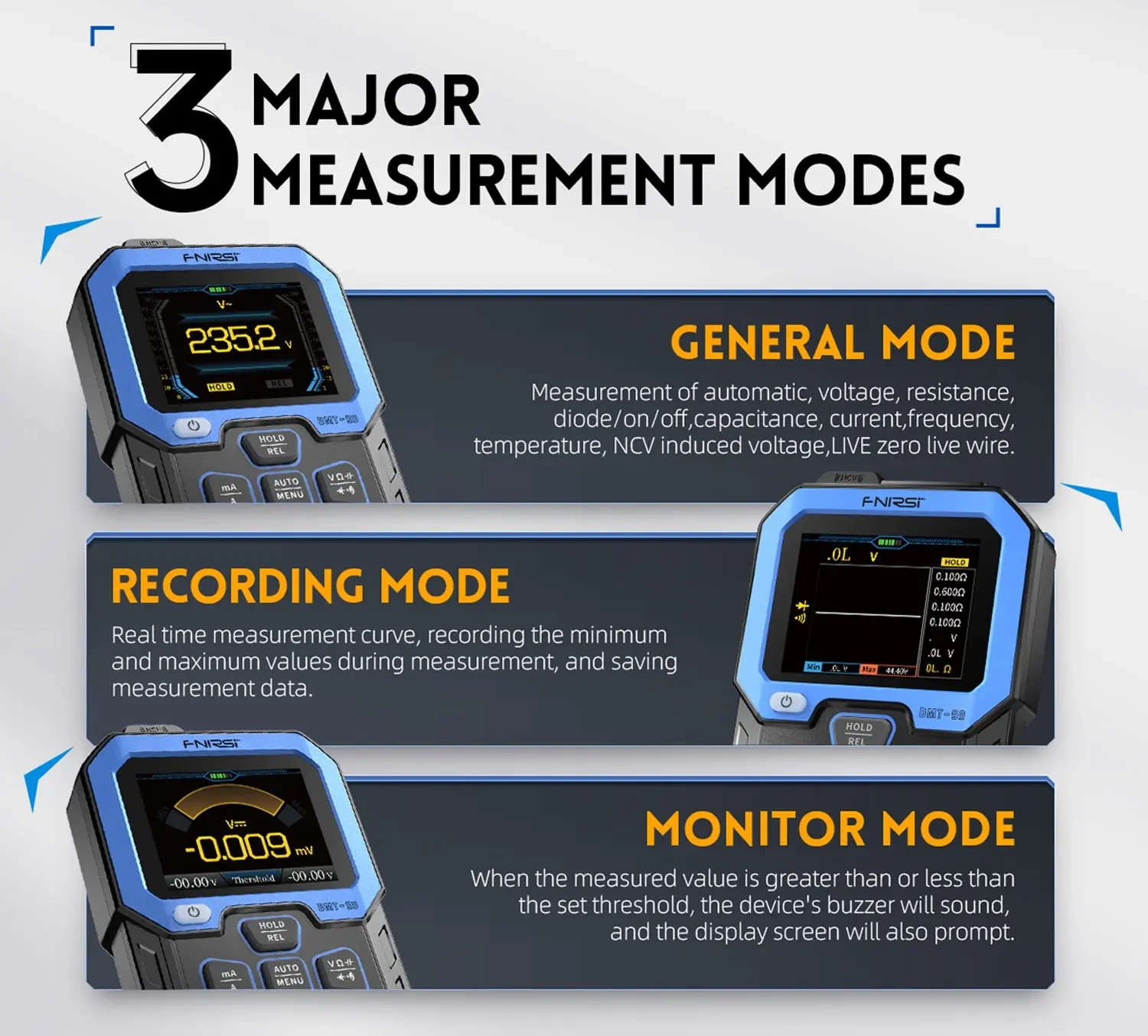 FNIRSI® DMT-99 to zaawansowany, wielofunkcyjny multimetr cyfrowy, który oferuje szeroki zakres funkcji pomiarowych i zaawansowane opcje konfiguracji. Jest idealnym narzędziem dla profesjonalistów i hobbystów wymagających precyzyjnych i dokładnych pomiarów.