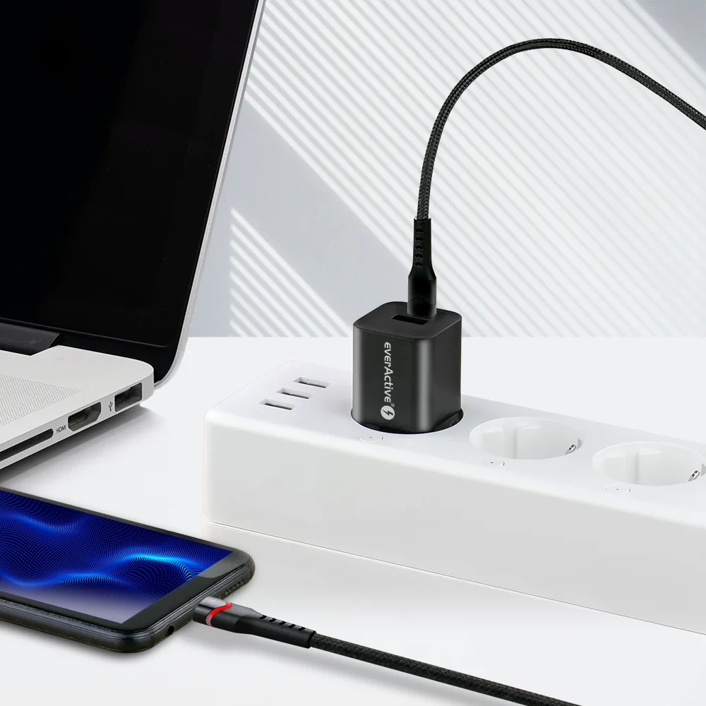everActive CBB-2PDR to solidny kabel USB-C o długości 200 cm, zaprojektowany do szybkiego i bezpiecznego ładowania urządzeń mobilnych. Wspiera standard Power Delivery 2.0 (PD), oferując moc ładowania do 60W (3A/20V) – idealnie sprawdza się przy zasilaniu smartfonów, tabletów i powerbanków.
