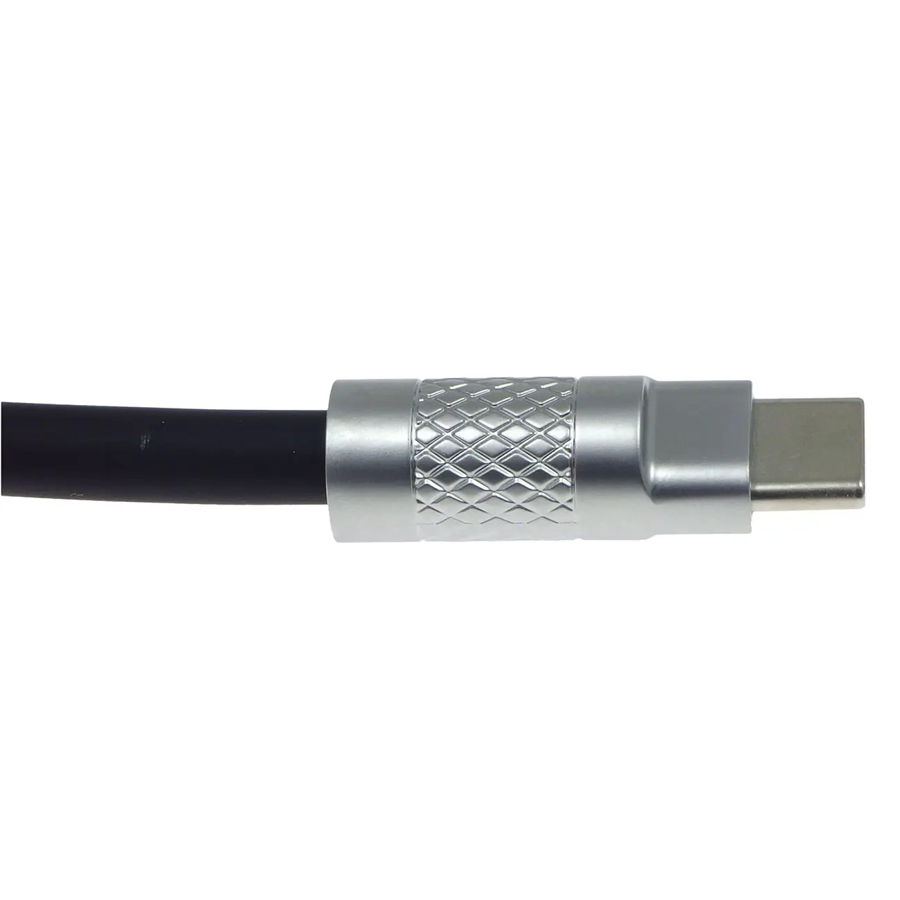 - Złącza USB-C: Obie strony kabla są wyposażone w złącza USB-C, które zapewniają stabilne połączenie i szybki transfer danych.