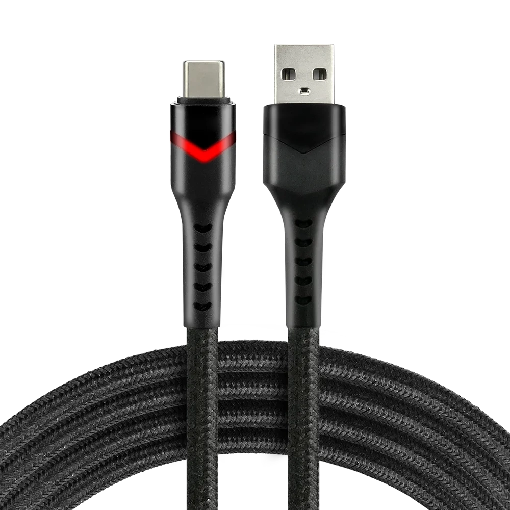 Kabel USB-A – USB-C RGB LED 1m, szybkie ładowanie 3A, pleciony, czarny – everActive CBB-1CBR