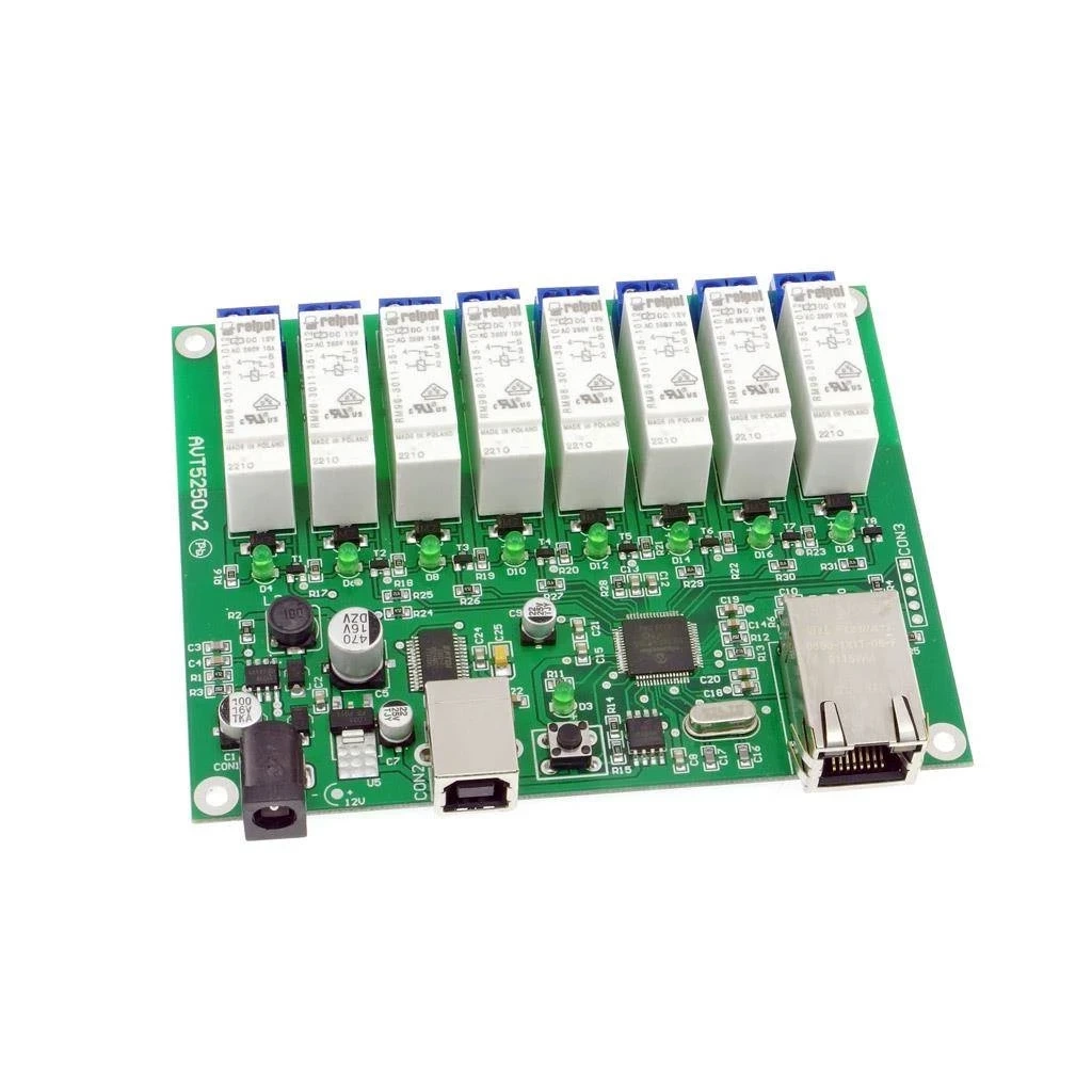 Urządzenie polecane wszędzie tam gdzie konieczne jest zdalne włączanie i wyłączanie różnych odbiorników prądu. Karta umożliwia sterowanie przekaźnikami poprzez interfejs Ethernet. Zastosowanie do tego specjalizowanego mikrokontrolera jest rozwiązaniem bardzo ekonomicznym – nie jest bowiem konieczne zaangażowanie do przełączania styków stacjonarnego, dużego komputera. Stany przekaźników oraz przyciski umożliwiające ich zmianę prezentowane są na generowanej przez procesor stronie internetowej. Zaletą takiego rozwiązania jest wygoda i uniwersalność – do obsługi urządzenia nie jest potrzebne żadne dodatkowe oprogramowanie. Wystarczy jedynie stara, dobra przeglądarka internetowa. Układ można sterować zarówno z komputera pracującego pod dowolnym systemem operacyjnym jak i z telefonu komórkowego (z obsługa netu).