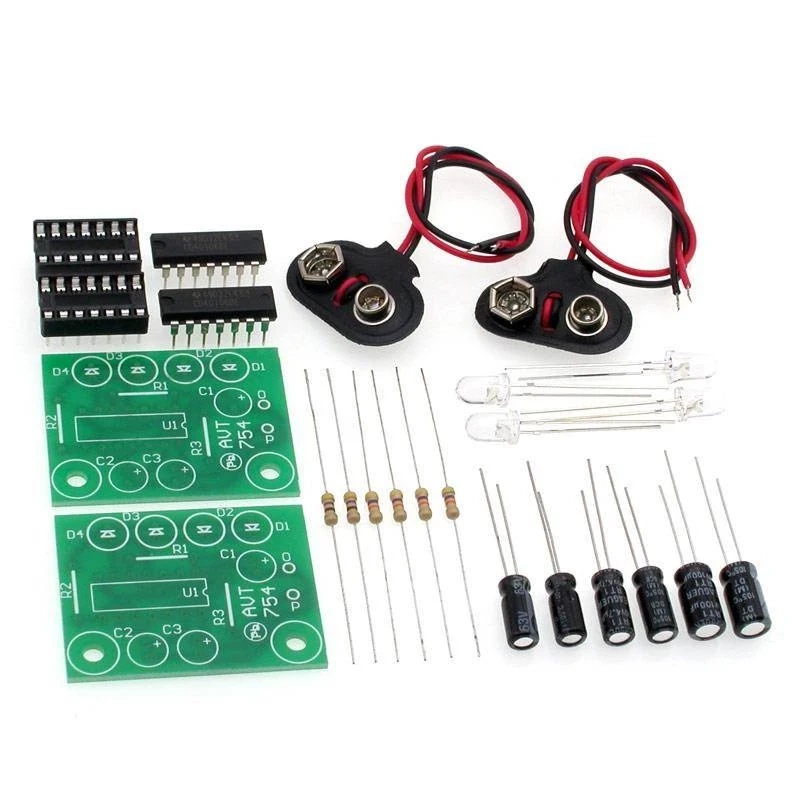 Wersja [B] zawiera dwa komplety płytek i elementów oraz cztery różnokolorowe diody LED. Pozwala to na zbudowanie dwóch migotek i obdzielenie nimi swoich znajomych i przyjaciół.
