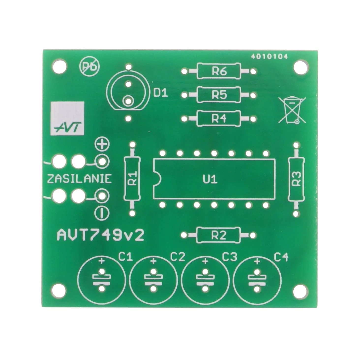 Układ zawiera 3-kolorową diodę LED. Za jej sterowanie odpowiedzialne są trzy, pracujące niezależnie generatory. Zaprojektowano je w oparciu o niezwykle popularny układ CMOS 40106. W jego strukturze znajduje się sześć inwerterów. Częstotliwości pracy generatorów wyznaczane są przez elementy RC - umożliwia to łatwą zamianę szybkości zmian kolorów. Układ dopuszcza stosowanie diody LED zarówno ze wspólną katodą jak i anodą. Łatwo można go przystosować do pracy z innym napięciem zasilającym.