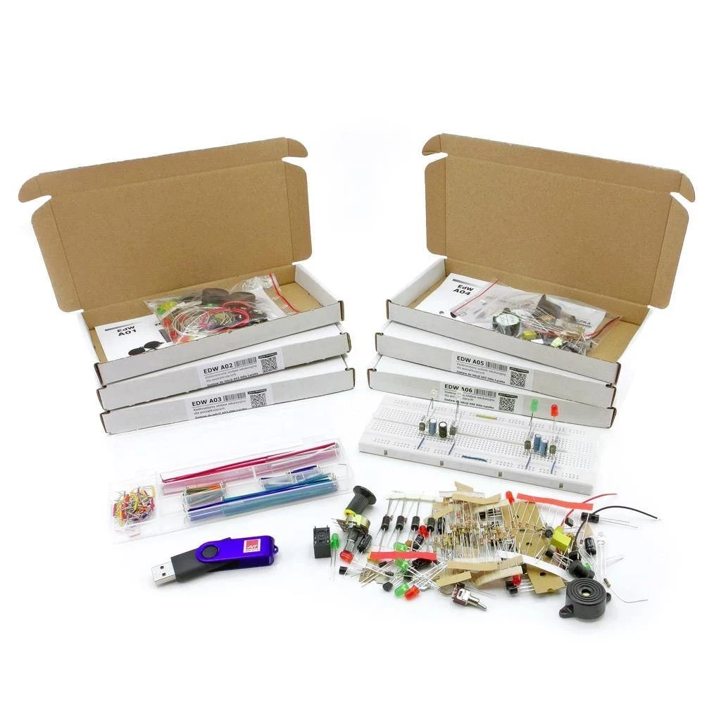Kompletny kurs podstaw elektroniki. 6 zestawów: A01 - A06 + płytka SD + łączówki + pendrive z kursem, EDW AKPLMAXI
