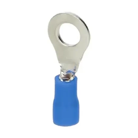 Końcówka izolowana oczkowa do zaciskania na końcach przewodów typu linka. Pozwala na wykonanie estetycznego i bezpiecznego zakończenia przewodu oczkiem, umożliwiającym połączenie śrubowe gwintowane. Produkt wykonany został z miedzi pokrytej warstwą cyny.