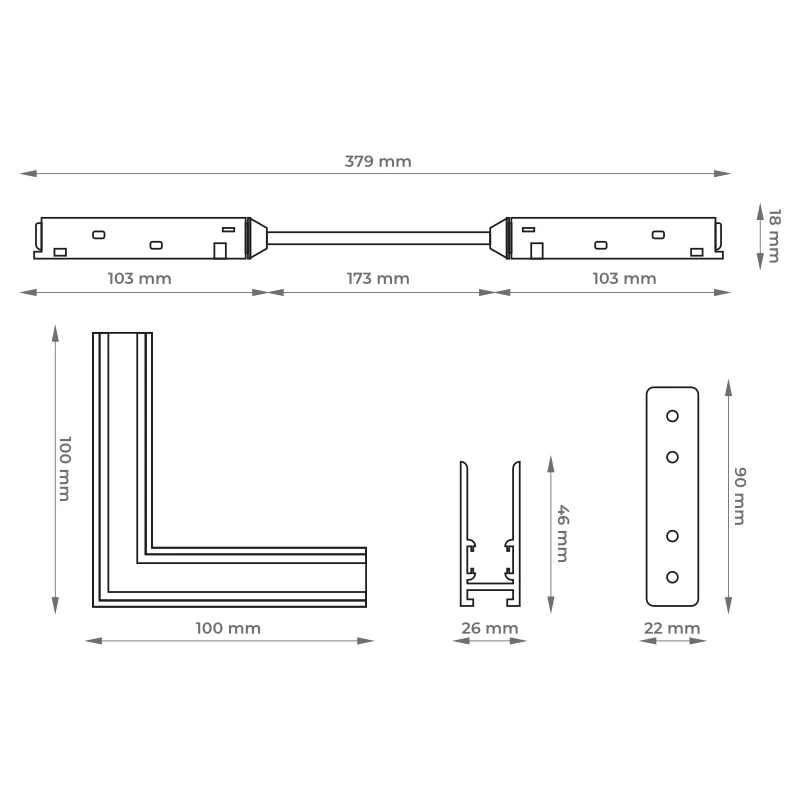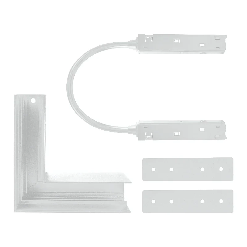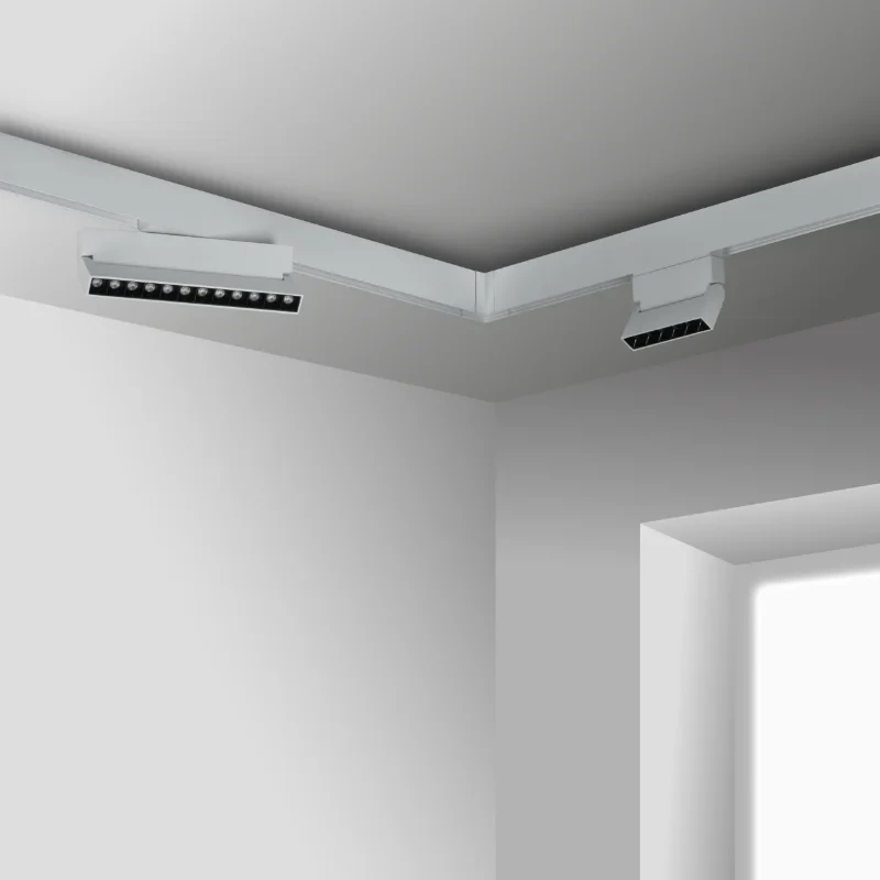- Możliwość łączenia szyn w rozmaite układy - proste, kątowe (L), sufitowe/ścienne, zewnętrzne czy wewnętrzne
