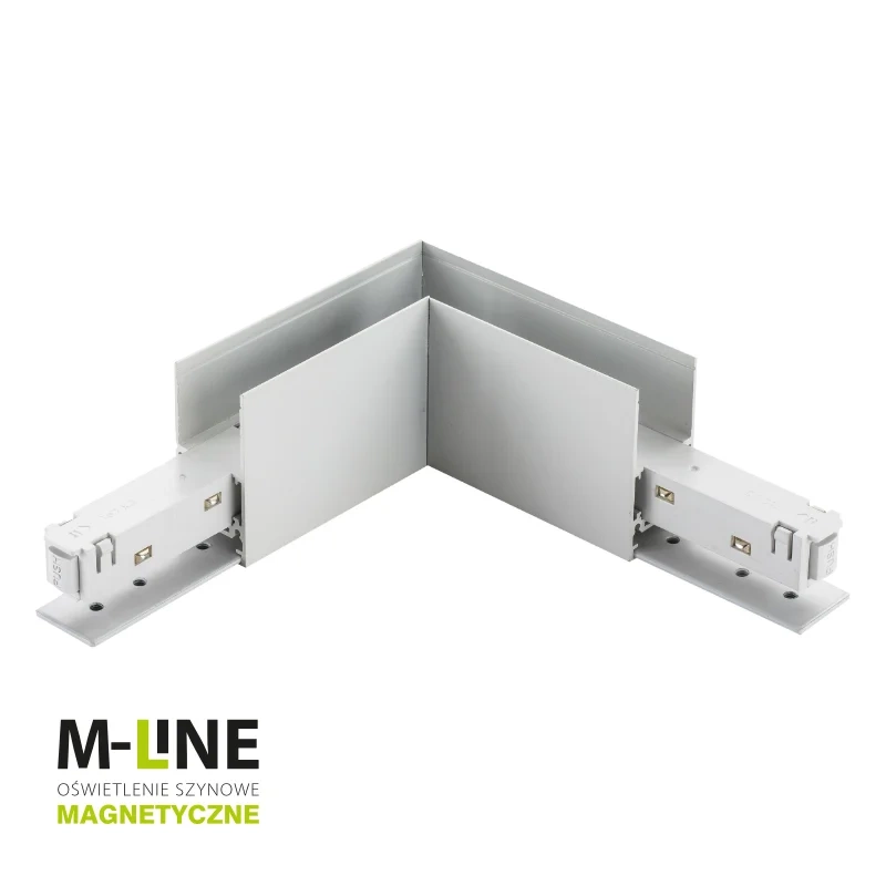 Łącznik kątowy poziomy M-LINE MTL-S-HL to precyzyjny element systemu oświetleniowego M-LINE, umożliwiający połączenie dwóch szyn magnetycznych pod kątem prostym w płaszczyźnie poziomej. Przeznaczony do montażu natynkowego, w eleganckim białym kolorze, pozwala na tworzenie estetycznych i funkcjonalnych układów oświetleniowych w pomieszczeniach mieszkalnych, biurowych i komercyjnych.