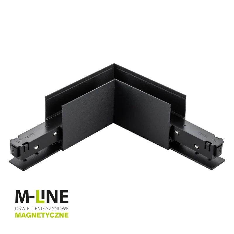 Łącznik kątowy poziomy M-LINE MTL-S-HL to precyzyjny element systemu oświetleniowego M-LINE, umożliwiający połączenie dwóch szyn magnetycznych pod kątem prostym w płaszczyźnie poziomej. Przeznaczony do montażu natynkowego, w eleganckim czarnym kolorze, pozwala na tworzenie estetycznych i funkcjonalnych układów oświetleniowych w pomieszczeniach mieszkalnych, biurowych i komercyjnych.