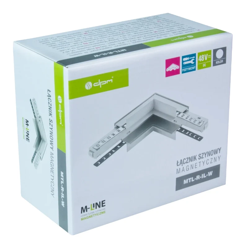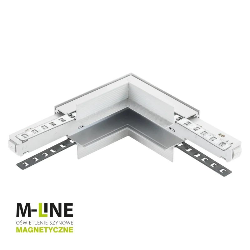 Łącznik szynowy 1-fazowy M-LINE MTL-R-IL to wysokiej jakości element systemu magnetycznego M-LINE, umożliwiający połączenie dwóch szyn magnetycznych pod kątem prostym wewnątrz zabudowy. Dzięki konstrukcji typu „L” oraz podtynkowemu montażowi pozwala tworzyć eleganckie i funkcjonalne układy oświetleniowe w sufitach podwieszanych lub zabudowach gipsowo-kartonowych. Białe, matowe wykończenie doskonale komponuje się z nowoczesnymi aranżacjami wnętrz.