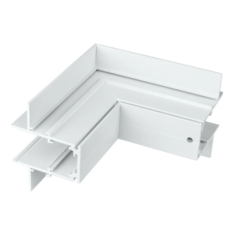 Łącznik MTL-R-OL służy do wykonania zewnętrznego połączenia szyn magnetycznych pod kątem 90°, co pozwala na prowadzenie linii świetlnej po zewnętrznych narożnikach sufitów lub ścian. To idealne rozwiązanie przy projektowaniu oświetlenia obiegającego zabudowę, kolumny, wnęki lub inne elementy architektoniczne. Dzięki precyzyjnym złączom element zapewnia zarówno trwałe połączenie mechaniczne, jak i stabilny przepływ prądu w całym układzie oświetleniowym.