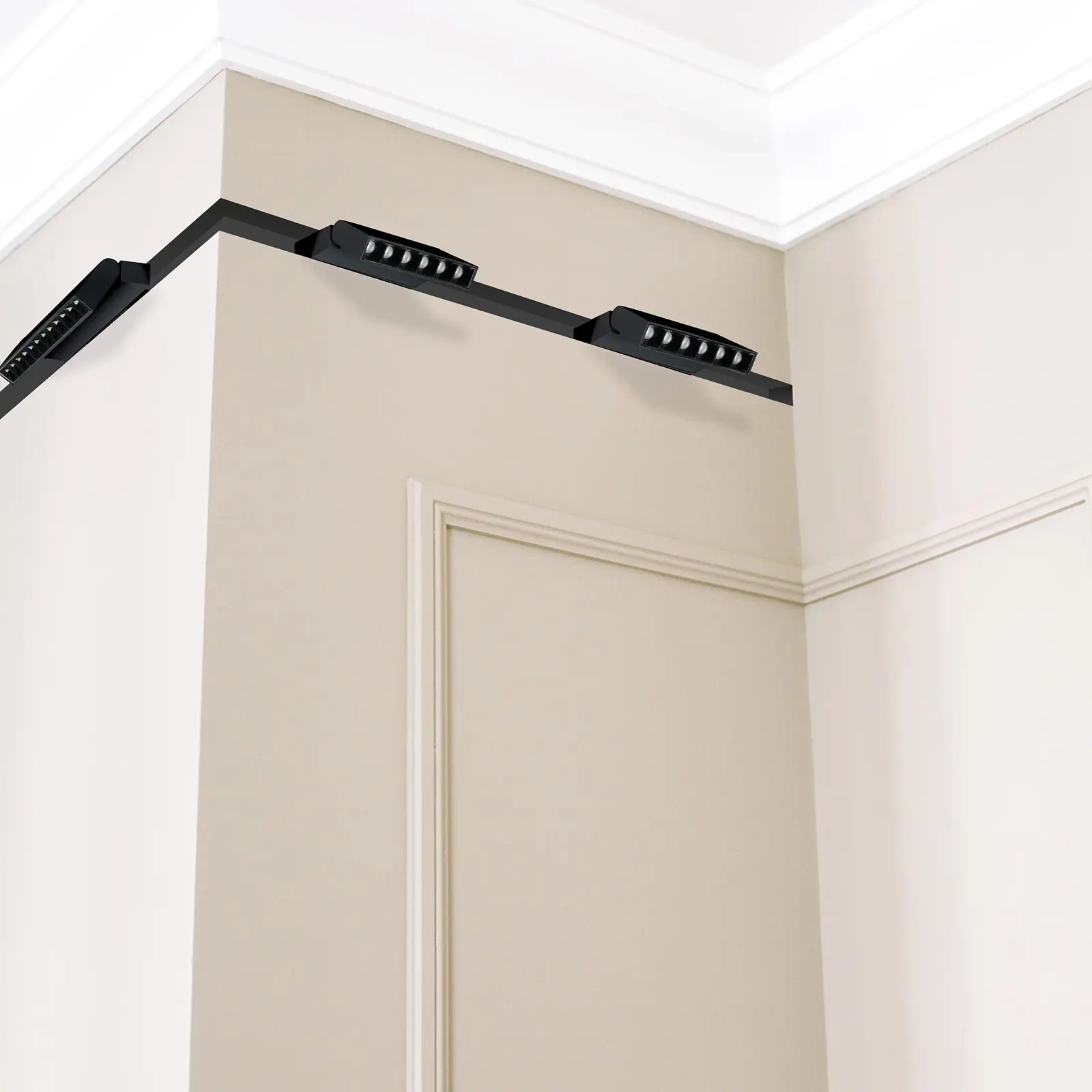 - Możliwość łączenia szyn w rozmaite układy - proste, kątowe (L), sufitowe/ścienne, zewnętrzne czy wewnętrzne