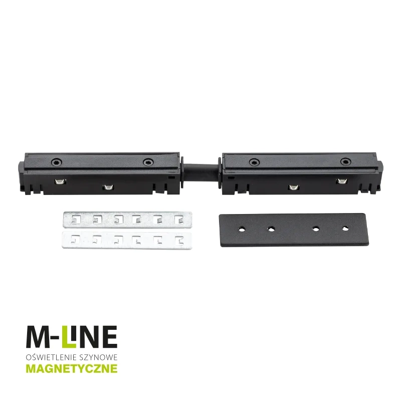 Łącznik prosty pełni rolę wejścia zasilania do szynoprzewodu w systemie M-LINE. Pozwala na szybkie i pewne połączenie szyny z zasilaczem DC 48 V, gwarantując niezawodny przesył energii do wszystkich opraw magnetycznych. Dzięki precyzyjnej konstrukcji i dopasowanym złączom, montaż łącznika jest szybki, prosty i nie wymaga użycia narzędzi.