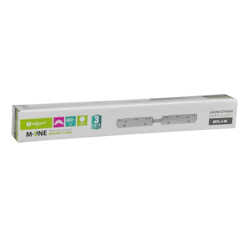 Łącznik zasilania prosty 1-fazowy M-LINE MTL-I-B to niezbędny element magnetycznego systemu oświetleniowego M-LINE, służący do doprowadzenia zasilania do szynoprzewodu. Umożliwia bezpieczne i stabilne podłączenie napięcia DC 48 V do linii szyny magnetycznej w układach 1-fazowych. Biała, minimalistyczna obudowa sprawia, że łącznik doskonale komponuje się z ciemnymi profilami i nowoczesnymi aranżacjami oświetlenia.