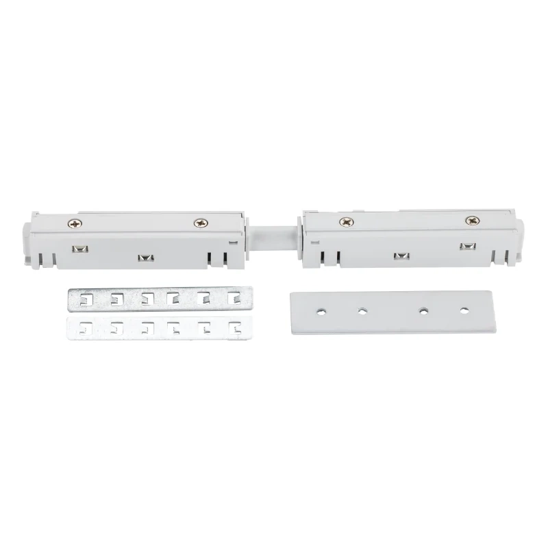 Łącznik prosty pełni rolę wejścia zasilania do szynoprzewodu w systemie DPM M-LINE. Pozwala na szybkie i pewne połączenie szyny z zasilaczem DC 48 V, gwarantując niezawodny przesył energii do wszystkich opraw magnetycznych. Dzięki precyzyjnej konstrukcji i dopasowanym złączom, montaż łącznika jest szybki, prosty i nie wymaga użycia narzędzi.