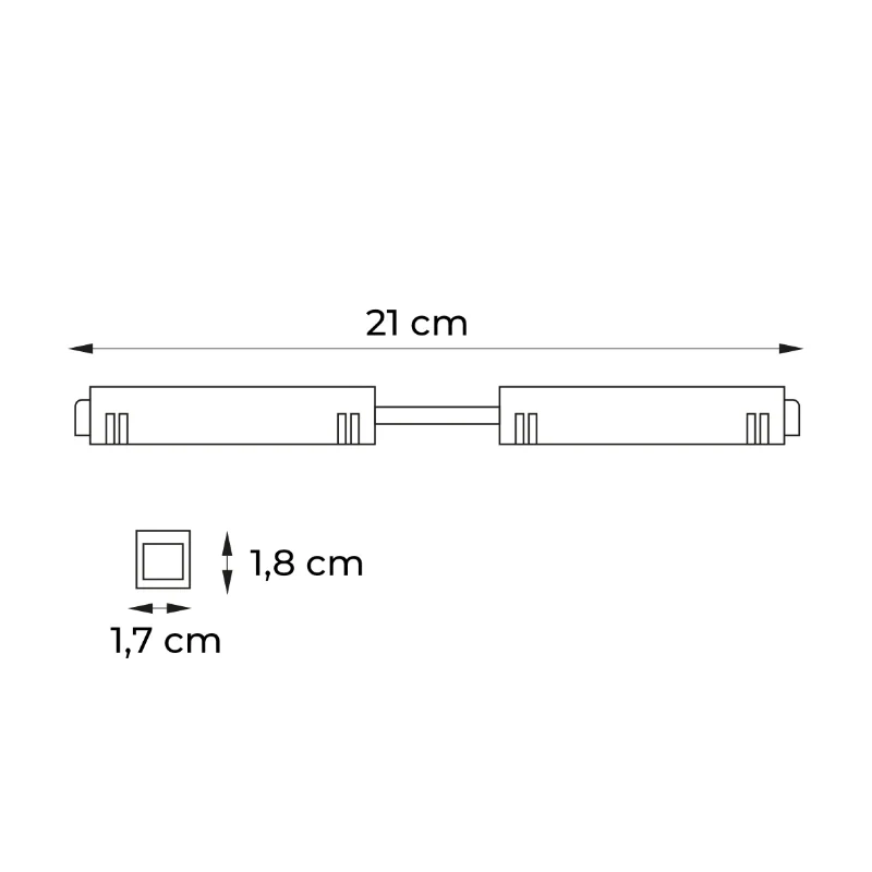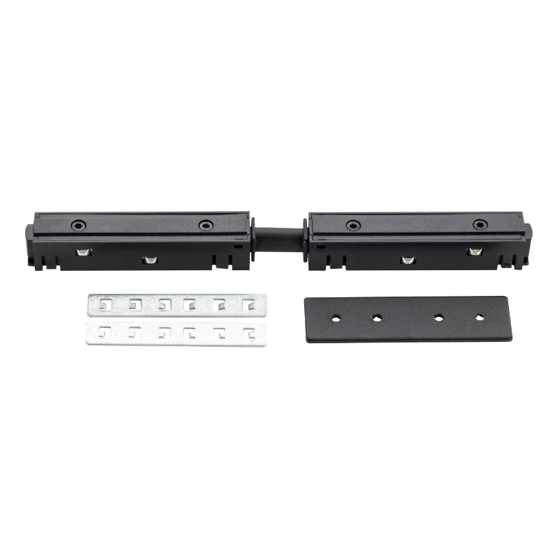 Łącznik prosty pełni rolę wejścia zasilania do szynoprzewodu w systemie DPM M-LINE. Pozwala na szybkie i pewne połączenie szyny z zasilaczem DC 48 V, gwarantując niezawodny przesył energii do wszystkich opraw magnetycznych. Dzięki precyzyjnej konstrukcji i dopasowanym złączom, montaż łącznika jest szybki, prosty i nie wymaga użycia narzędzi.