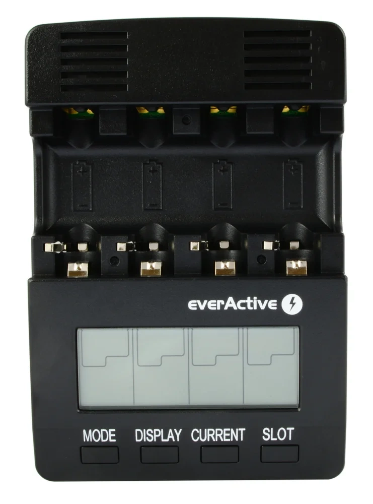 - nieco większa od konkurencji - b. wygodna w użytkowaniu - ładowarka umożliwia szybkie instalowanie i usuwanie ogniw z każdego ze slotów, zapewniając przy tym b. dobrą cyrkulację powietrza / chłodzenie,