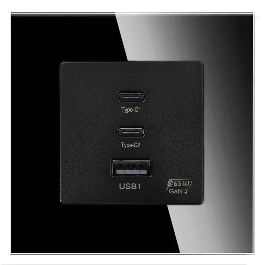 Ładowarka GaN USB 65W 1xUSB-A + 2xUSB-C czarna - z ramką szklaną TAWOIA Glass