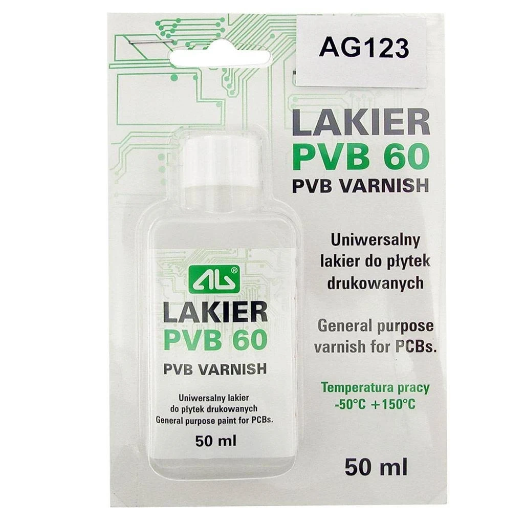 Szybkoschnąca przezroczysta powłoka PVB o dobrych właściwościach izolacyjnych. Zabezpiecza przed korozją płytki drukowane i inne elementy pracujące w niesprzyjających warunkach atmosferycznych. Powłoka chroni płytki drukowane przed powstawaniem prądów błądzących i zwarć. W szeregowych seriach produkcyjnych lakier można nanosić pędzlem, przez zanurzanie lub natryskiwanie. Jeśli mieszanka jest zbyt lepka dla urządzeń natryskowych, można ją rozrzedzić poprzez dodanie rozcieńczalnika – Rozpuszczalnik PVB. Dokładne proporcje składników muszą być określane indywidualnie. Produkt musi być właściwie zabezpieczone podczas przechowywania. Lakier jest podatny na sieciowanie.