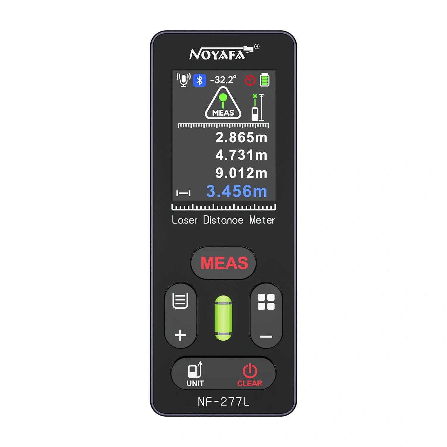 NOYAFA NF-277L to zaawansowany dalmierz laserowy przeznaczony do precyzyjnych pomiarów odległości, powierzchni, objętości, kątów i wysokości w pracy budowlanej, instalacyjnej, projektowej oraz przy inwentaryzacjach. Urządzenie służy do szybkiego i dokładnego zbierania danych pomiarowych zarówno wewnątrz, jak i na zewnątrz budynków.