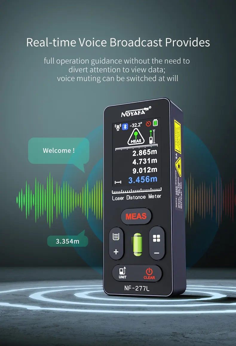 NOYAFA NF-277L – dalmierz laserowy 100 m z zielonym laserem i komunikatami głosowymi