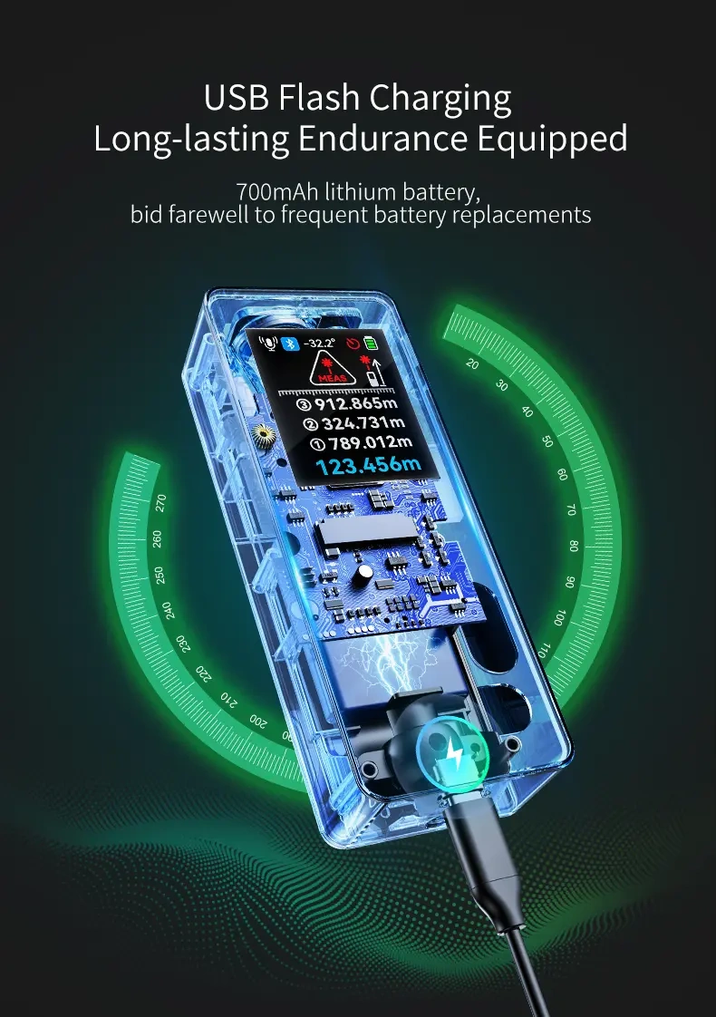 Urządzenie obsługuje rozbudowany zestaw trybów pomiarowych, w tym pomiar trójkąta, trapezu, automatyczny pomiar poziomu i pionu, pomiary pośrednie metodą Pitagorasa oraz tryb ciągły. Wbudowany czujnik trójosiowy oraz elektroniczna poziomnica pomagają utrzymać prawidłowe ustawienie urządzenia, co bezpośrednio przekłada się na wiarygodność wyników.