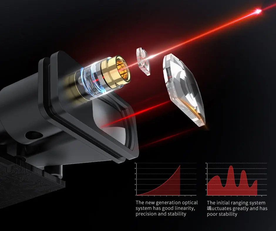 Zastosowanie nowej generacji asferycznego układu optycznego poprawia stabilność wiązki i powtarzalność pomiarów, co ma realne znaczenie przy pracy w pomieszczeniach, na długich ścianach lub przy pomiarach pośrednich. NF-276L umożliwia zarówno pojedynczy pomiar, jak i ciągłe skanowanie, pomiary MAX/MIN, powierzchni, objętości, a także pomiar kąta i wysokości (funkcja Pitagorasa).