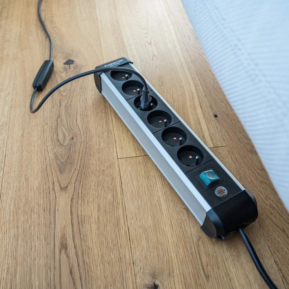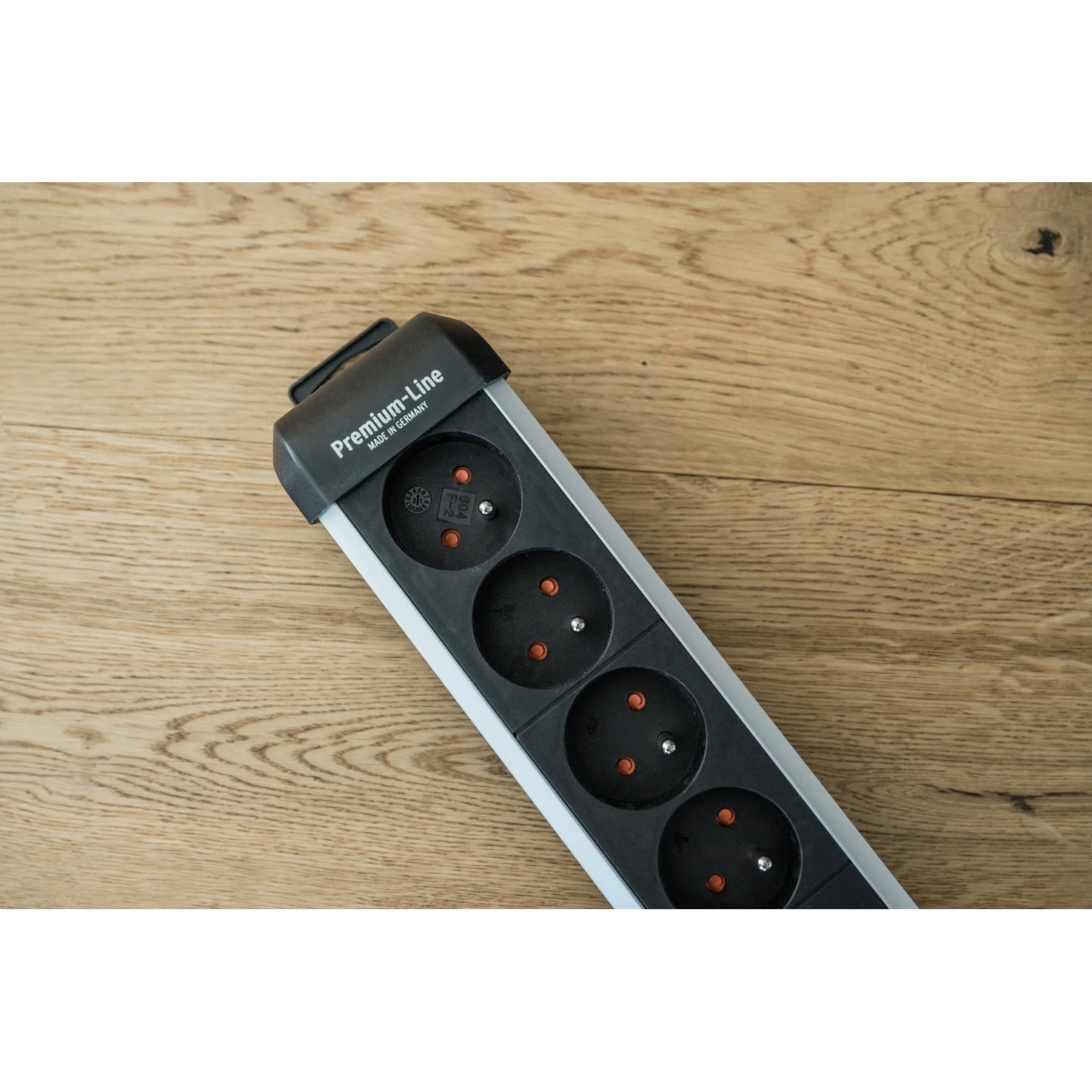 Przedłużacz sieciowy Premium-Alu-Line to listwa zasilająca z wysokiej jakości aluminium (gniazdo wielokrotne z wyłącznikiem i kablem 3m, Made in Germany)