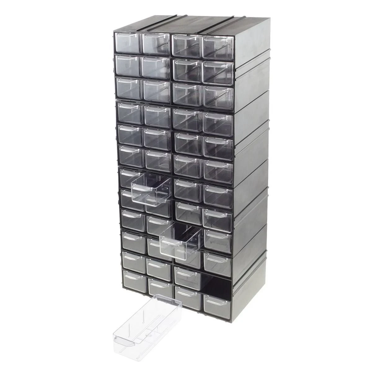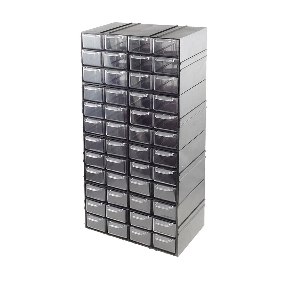 Magazynek modułowy (organizer) z serii PX z 48 szufladkami (bez przegródek). Magazynek składa się z 4 modułów PX12 połączonych ze sobą na gorąco w trakcie produkcji.