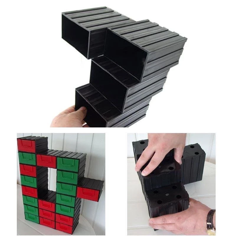 Praktyczna szafka z tworzywa sztucznego. Przemyślana konstrukcja szafki pozwala na rozkładanie jej na podstawowe moduły i ponowne składanie w dowolny gabaryt - oczywiście w ramach wielokrotności modułu podstawowego.