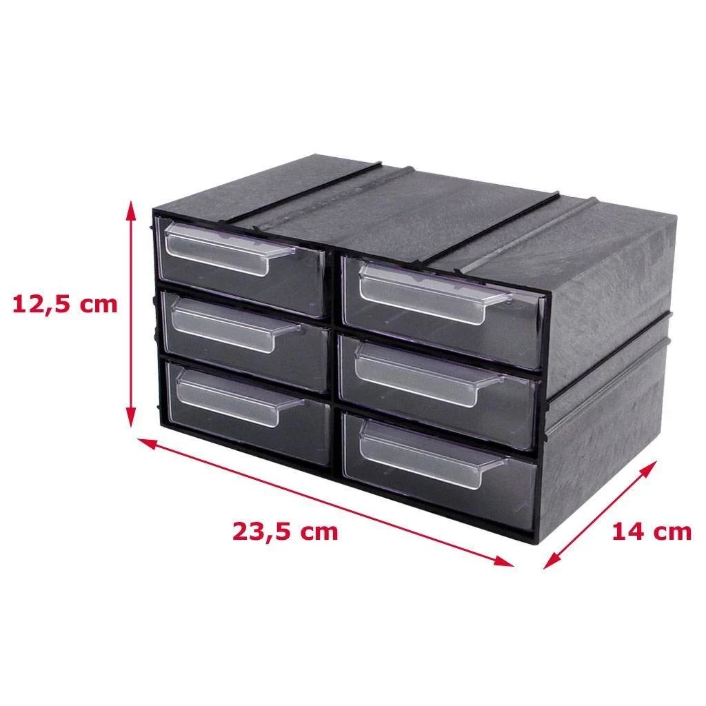 Magazynek modułowy z serii PX z 6 szufladkami.