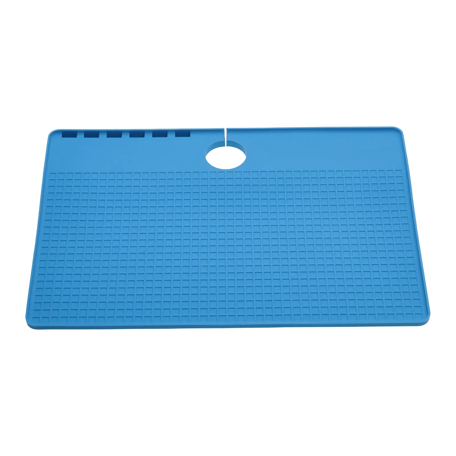 - Wykorzystaj odpowiednią stronę maty do konkretnego zadania — strona gładka ze składzikami idealnie nadaje się do pracy lutowniczej, a strona z kratką świetnie sprawdzi się przy segregowaniu podzespołów podczas demontażu urządzeń.