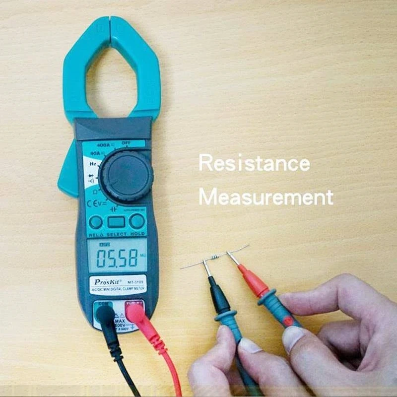 - rezystancja [Ω]: 400Ω ±(1.2%+5d), 4k/40k/400kΩ ±(1.0%+5d), 4MΩ ±(1.2%+5d), 40MΩ ±(1.5%+5d)