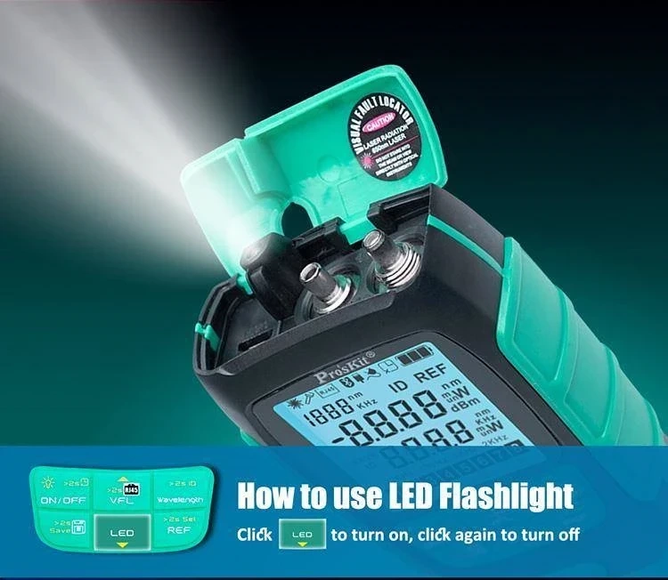 - Złącze miernika mocy optycznej: uniwersalne złącze 2.5mm ST/SC/FC