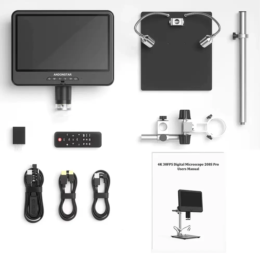 Andonstar AD208S-PRO to wysokiej klasy mikroskop cyfrowy 4K UHD stworzony z myślą o specjalistach zajmujących się naprawą elektroniki, precyzyjnym lutowaniem, a także pasjonatach mikroskopii. Dzięki ekranowi IPS 10,1”, wideo 4K przy 30 FPS oraz metalowej podstawie, urządzenie gwarantuje wyjątkową jakość obrazu, komfort pracy i niezawodność w wymagających zastosowaniach technicznych.