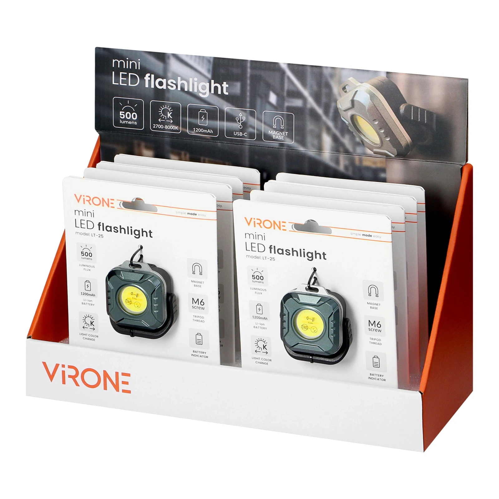 Latarka wyposażona jest w ruchomą podstawkę, która umożliwia precyzyjnie ustawić kierunek światła. Wbudowany magnes oraz gwint pod śrubę M6 pozwalają na stabilne zamocowanie urządzenia na metalowych powierzchniach lub na małym statywie. Dodatkowy otwór na zawieszkę umożliwia zawieszenie latarki w dowolnym miejscu.