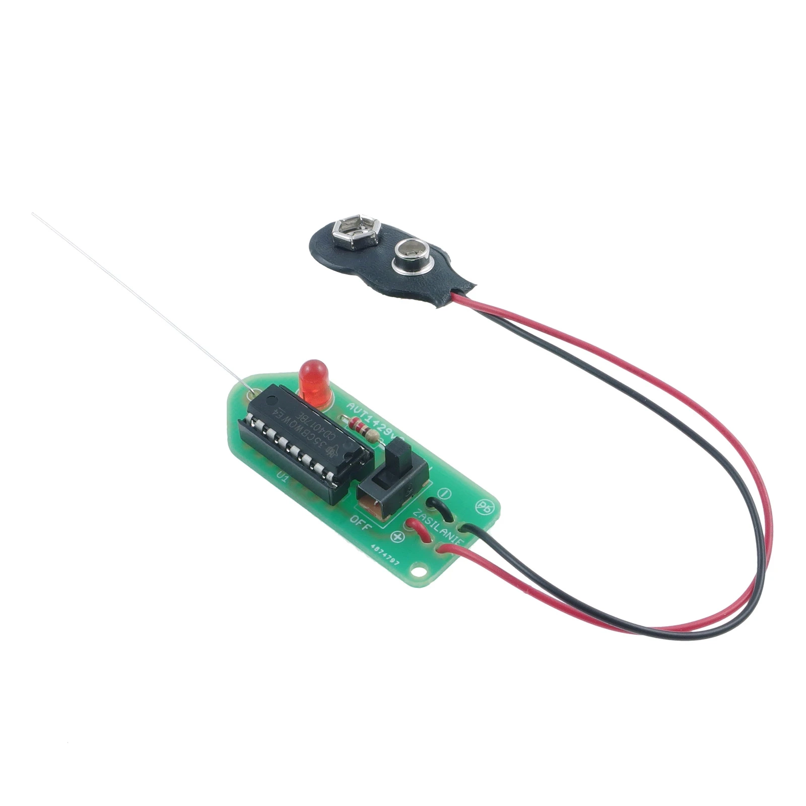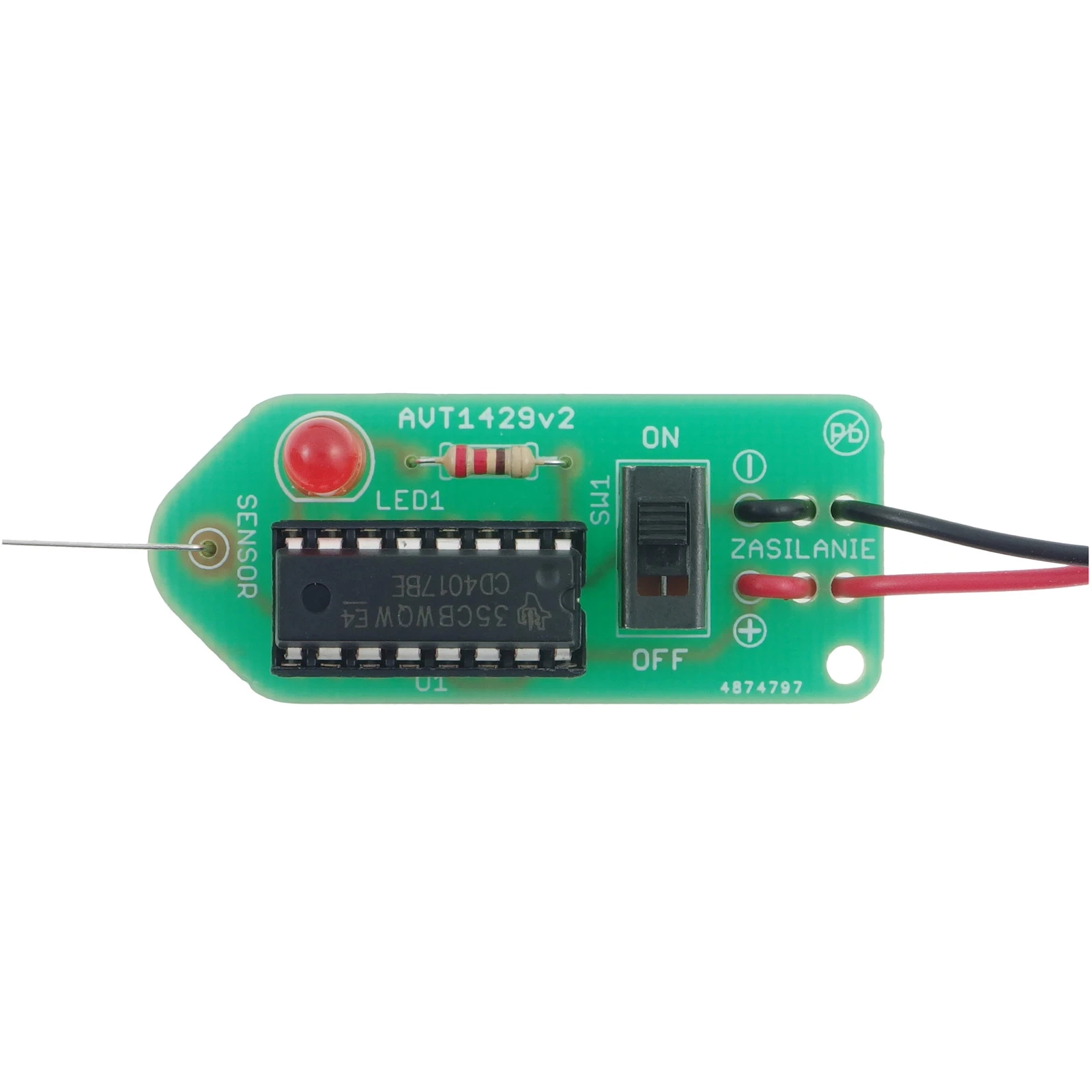 Prosty wykrywacz pola elektromagnetycznego, pozwalający z duża dokładnością ustalić położenie przewodów elektrycznych pod napięciem. Wykorzystanie urządzenia podczas prac remontowych w znacznym stopniu ograniczy możliwość natrafienia i uszkodzenia instalacji elektrycznej. Wykrywacz sygnalizuje obecność pola elektromagnetycznego świeceniem diody LED. Jej migotanie jest tym intensywniejsze im bliżej przewodu znajduje się czujnik wykrywacza.