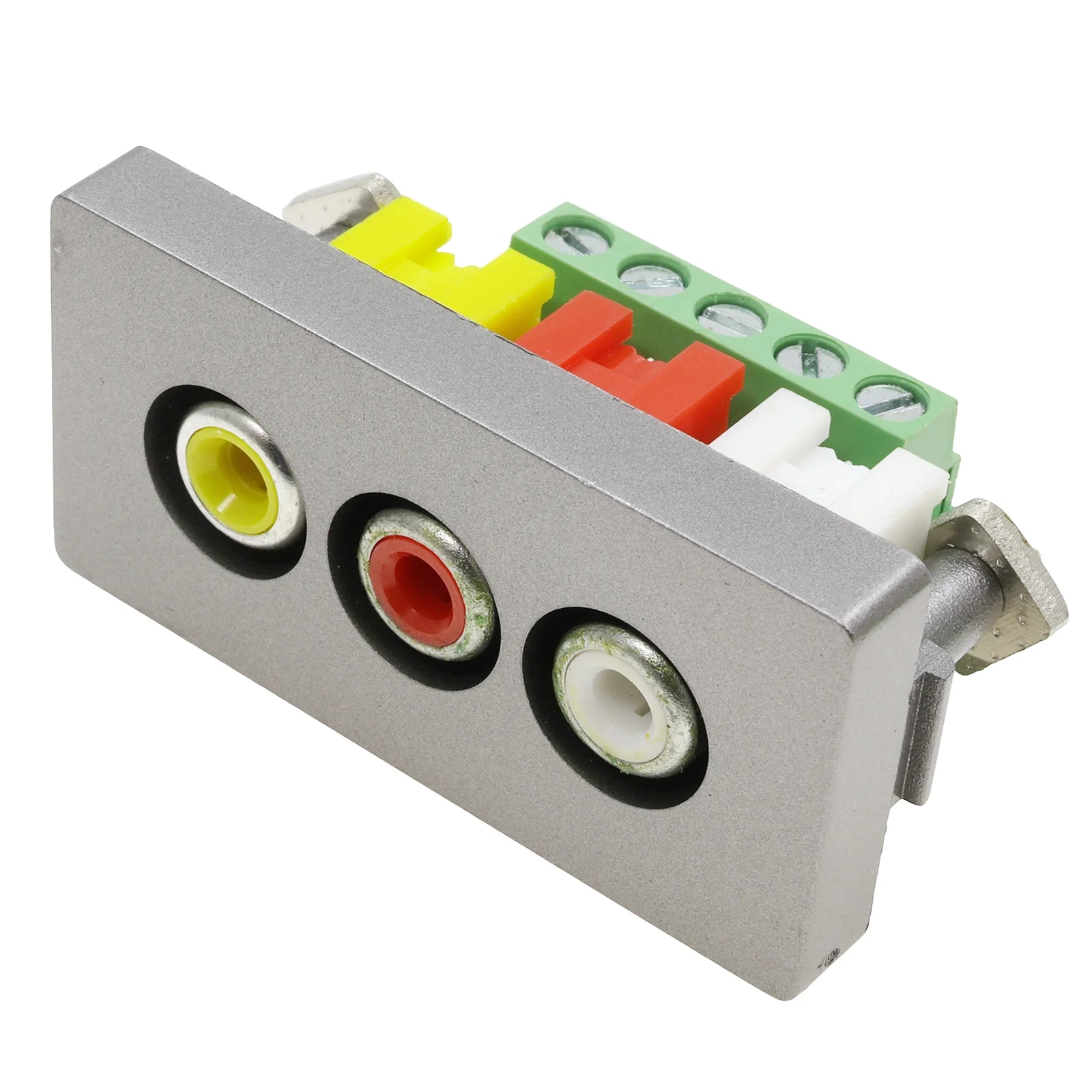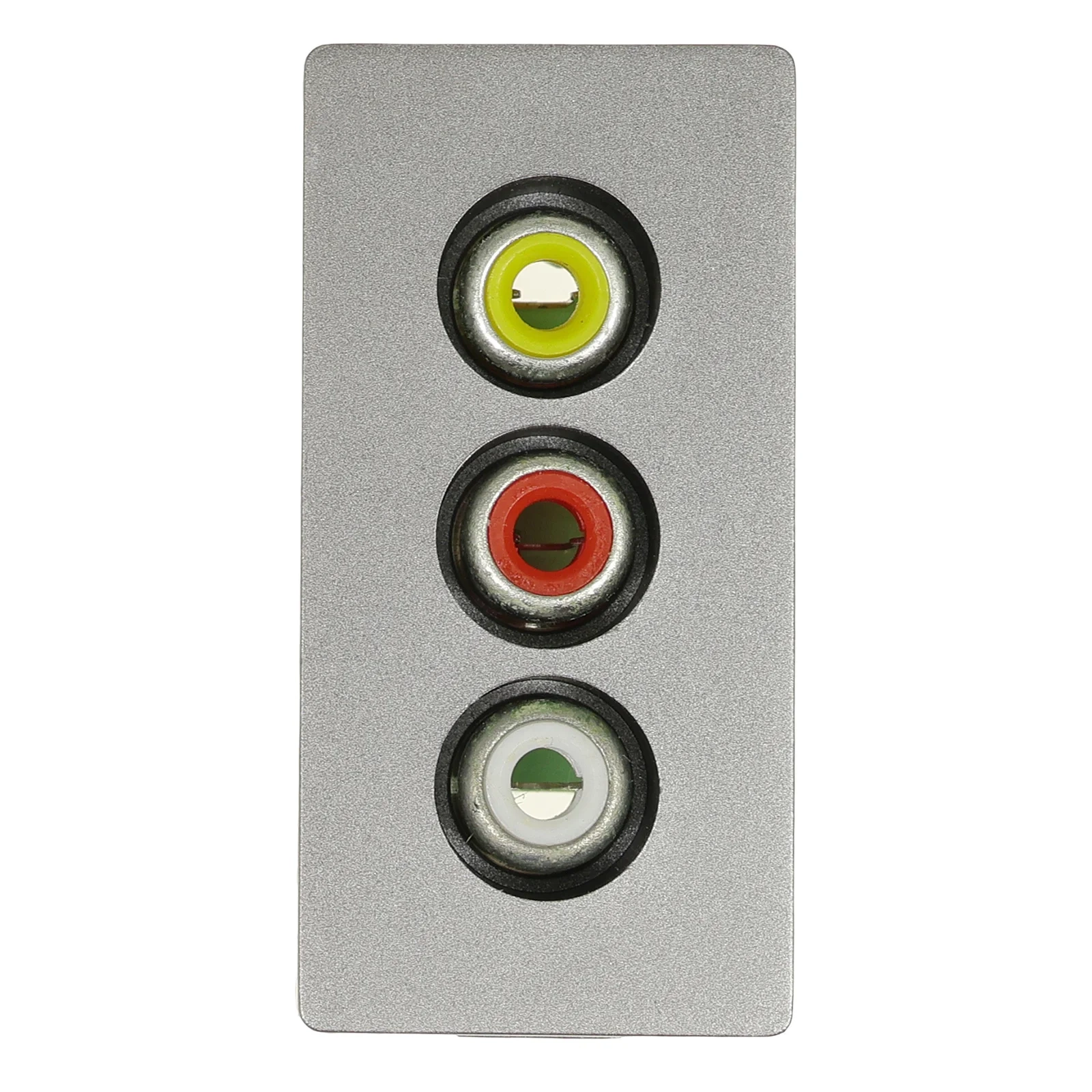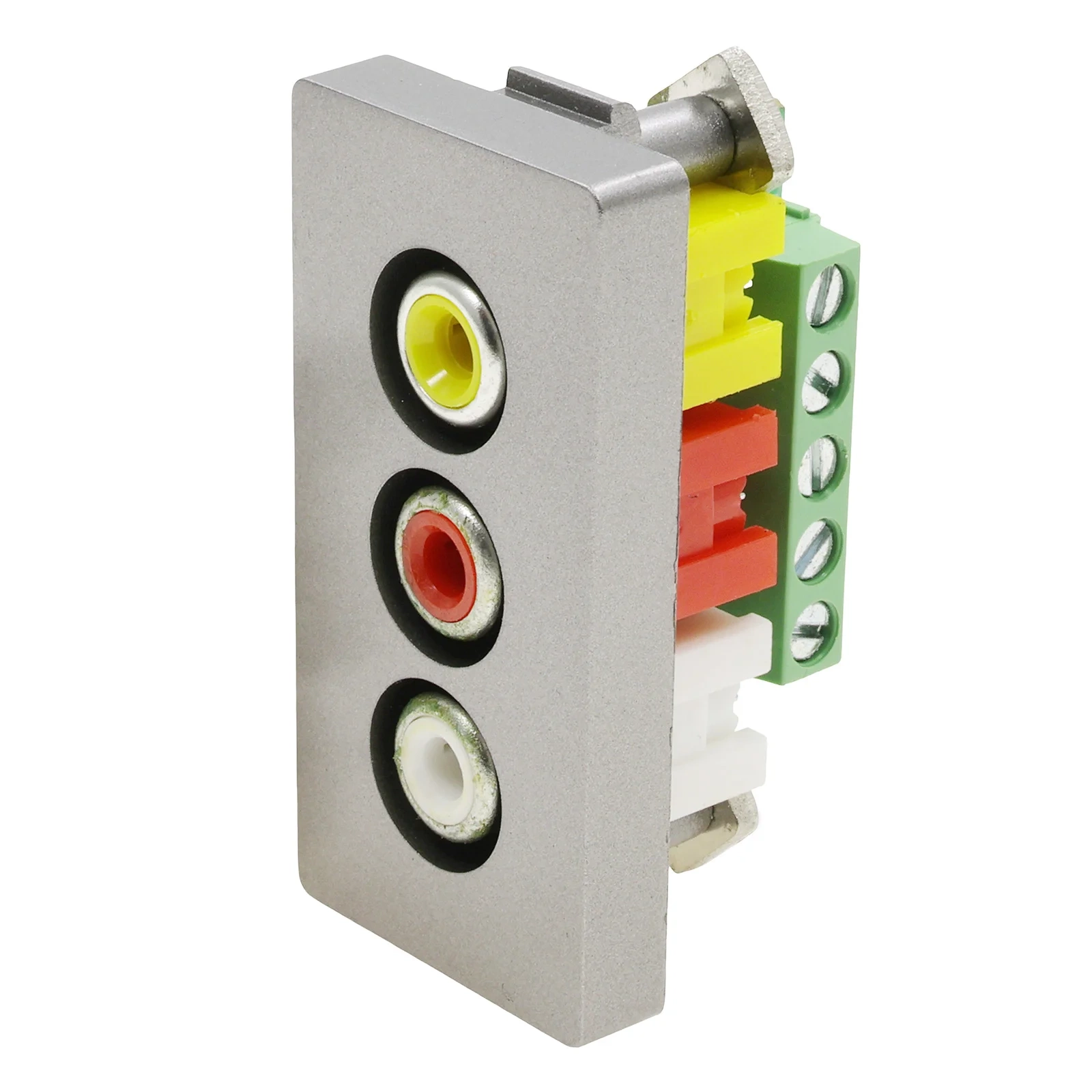 Złącze RCA, popularny "cinch", kiedyś było powszechnie używanym standardem do przesyłania sygnałów kablami audio i wideo. Obecnie spotykane tylko w sprzęcie starszej daty. Moduł z gniazdami A&V ma szerokość ½ otworu ramki TAWOIA Glass.