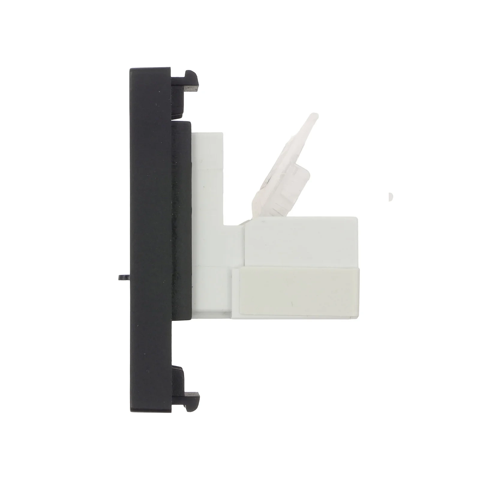 W drugiej połówce otworu można umieścić inne moduły „połówkowe” z naszej oferty, takie jak: gniazda dla Internetu (RJ45), TV, Sat TV, A&V, HDMI.