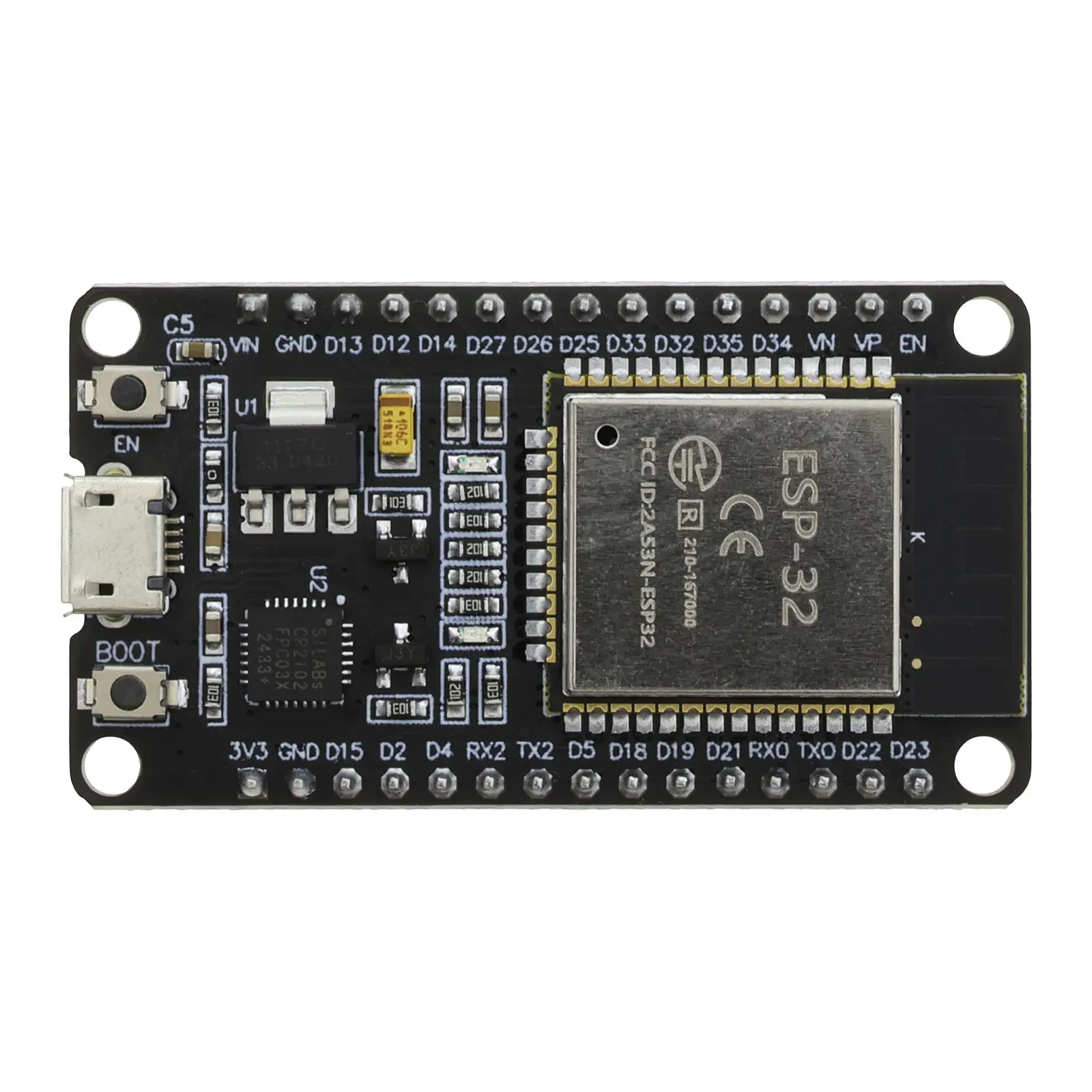 Płytka wyposażona w moduł ESP-32. Moduł ten posiada wyprowadzenia goldpin o rastrze 2.54mm. Układ ESP dedykowany jest do komunikacji w sieci Wi-Fi 2.4GHz oraz w standardzie Bluetooth 2,4 GHz Dual Mode. Jego dużą zaletą jest kompatybilność z popularnymi interfejsami jak UART, SPI czy też I2C.