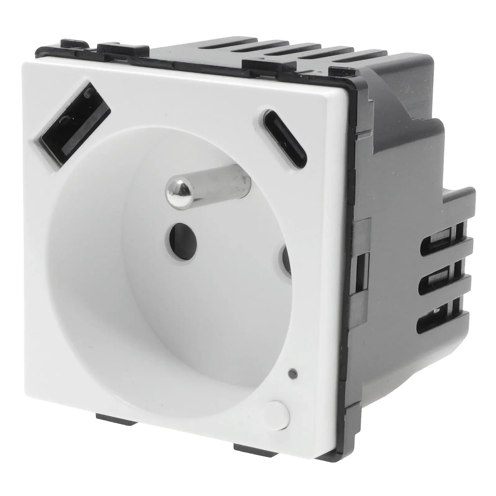 Moduł gniazda z bolcem uziemiającym (typu French) z WiFi i funkcją watomierza to nowoczesne rozwiązanie do inteligentnego domu. Umożliwia zdalne sterowanie i monitorowanie zużycia energii elektrycznej, a dodatkowo wyposażony jest w dwa porty USB: A i C do szybkiego ładowania urządzeń mobilnych.