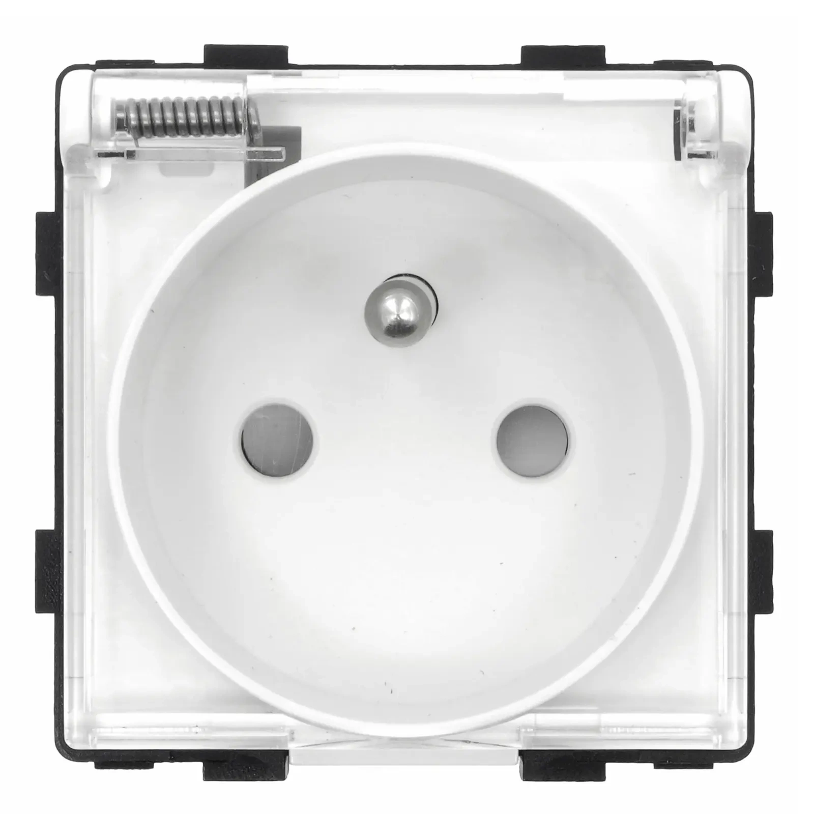 - Produkt: moduł bryzgoszczelnego gniazda z uziemieniem typu French z klapką, podtynkowy