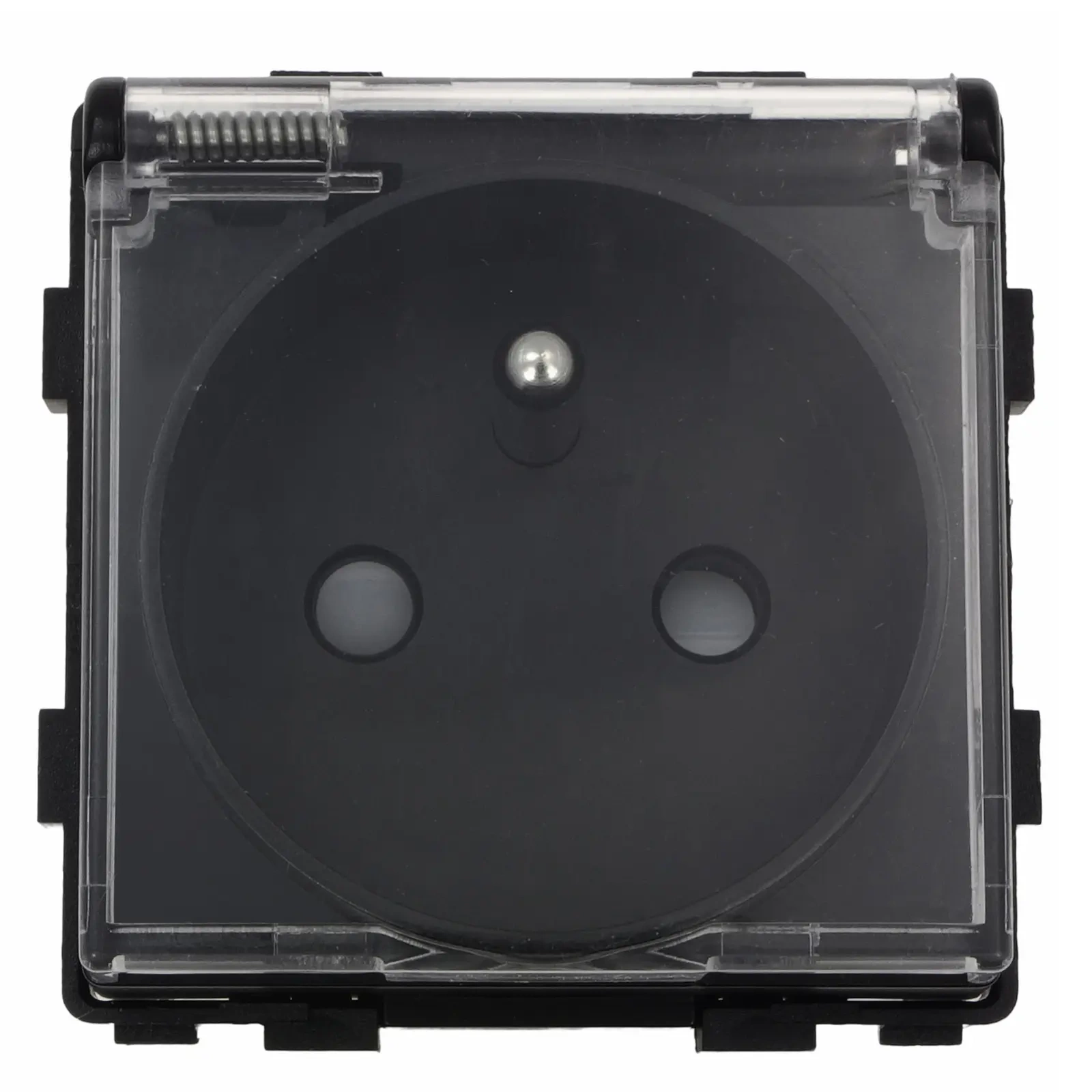 - Produkt: moduł bryzgoszczelnego gniazda z uziemieniem typu French z klapką, podtynkowy