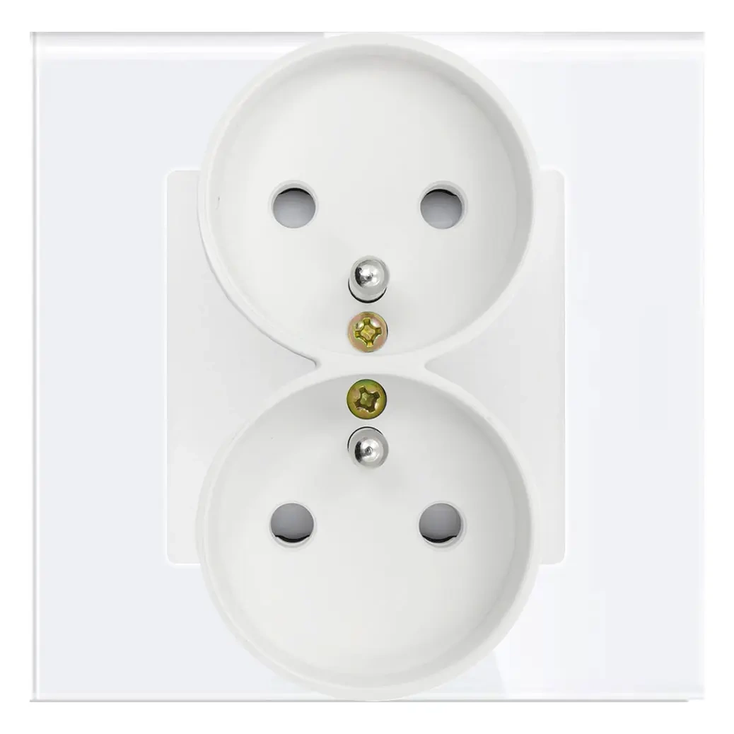 Gniazdko elektryczne ścienne podwójne z uziemieniem typu europejskiego tzw. French pasujące do ramek serii TAWOIA Glass.